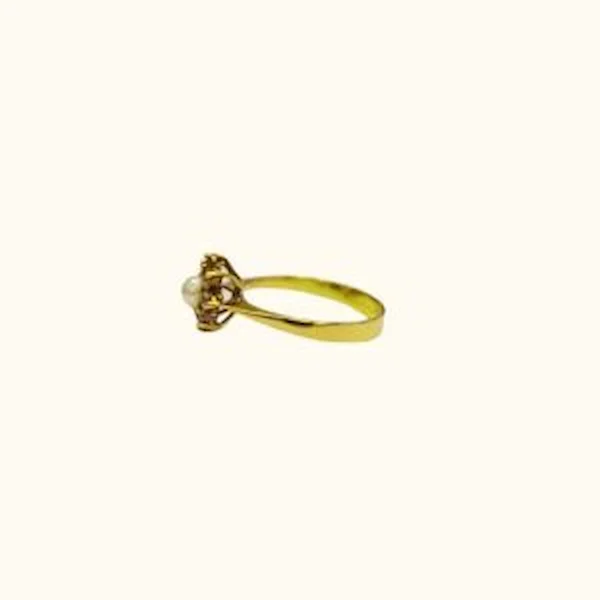 Anillo Roseta Oro 18K con Perla Cultivada y Circones – Elegancia Atemporal