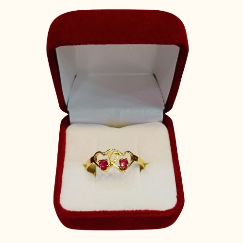 ✨ Anillo Juvenil Dos Corazones con Rubí en Oro 18K