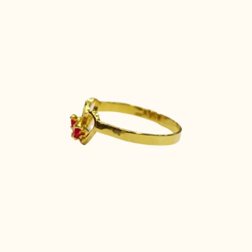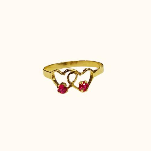 Este romántico anillo juvenil, hecho completamente a mano en oro 18K, presenta dos corazones unidos con un rubí (piedra semipreciosa) rojo que representa el amor compartido entre dos personas. Perfecto para expresar los primeros sentimientos de amor con una joya que lo porta cerca del corazón.