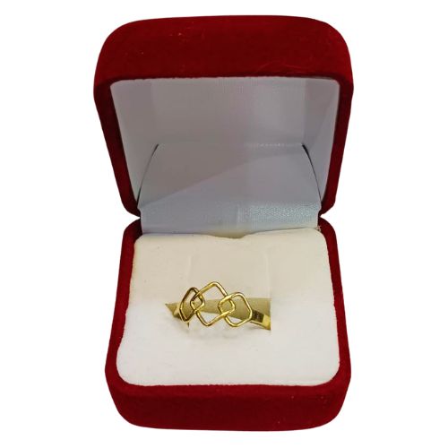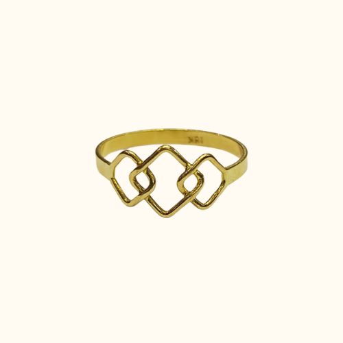 Este llamativo anillo juvenil, hecho completamente a mano en oro 18K, presenta tres rombos geométricos artesanales que crean un diseño moderno y vanguardista. La geometría del rombo simboliza estabilidad, equilibrio y personalidad que se destaca.