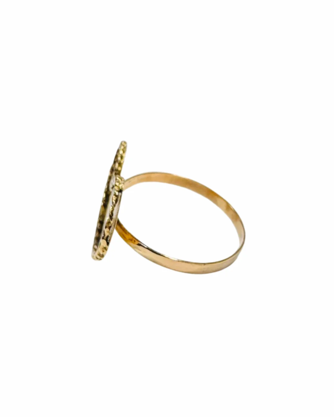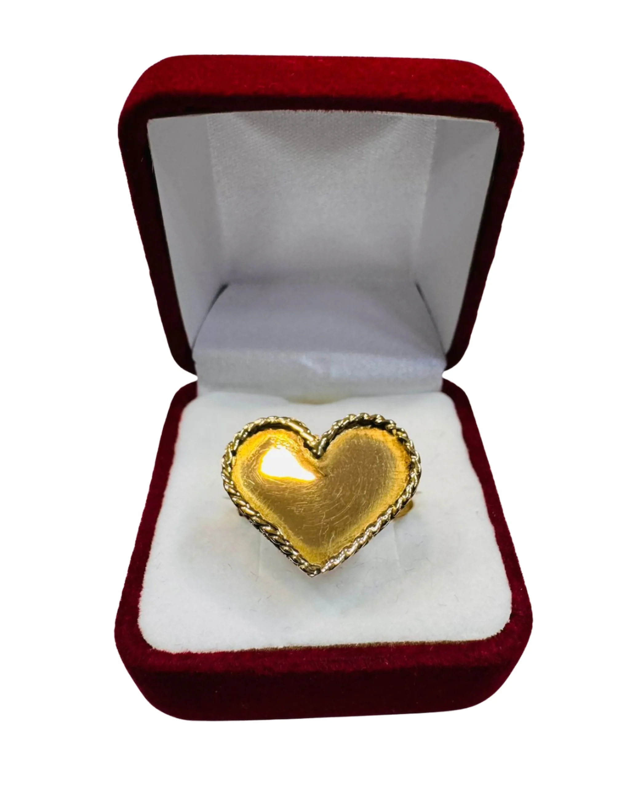 Este hermoso anillo, hecho completamente a mano en oro 18K, presenta un corazón con borde trenzado artesanal y superficie lisa perfecta para fotograbado personalizado. Convierte tus momentos más especiales en una joya que se porta cerca del corazón: graba la foto de quien amas, un momento inolvidable o un recuerdo eterno.