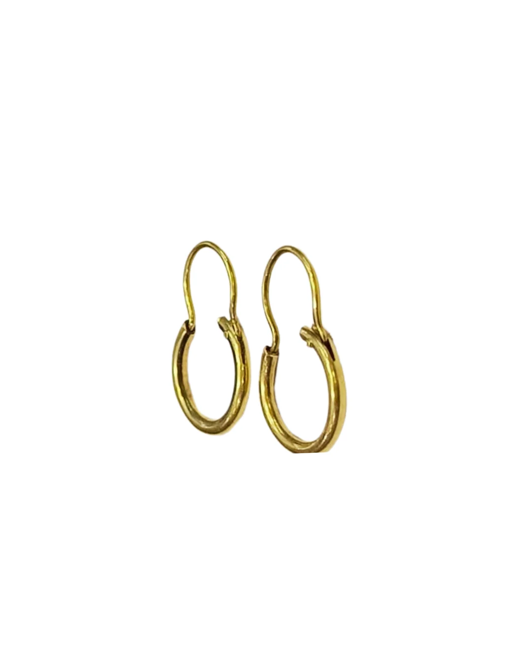 Estas elegantes argollas, hechas completamente a mano en oro 18K, presentan diseño tipo tubo con detalle de arco que crea una forma arquitectónica única. El arco aporta movimiento y sofisticación visual.