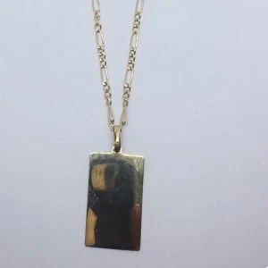 Elegante cadena Cartier 3×1 de 60 centímetros en oro 18K, acompañada de una placa recordatoria número 5 perfecta para grabar nombres, fechas, Fotograbados o mensajes especiales que quieras llevar siempre contigo.