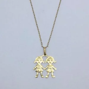 Delicada cadena limada de 45 centímetros en oro 18K con adorables colgantes de niñas que puedes combinar a tu elección, símbolo de bendición, alegría familiar y amor por las hijas. Perfecta para mamás que quieren representar a sus niñas, regalar en bautizos o celebrar la llegada de una bebé.