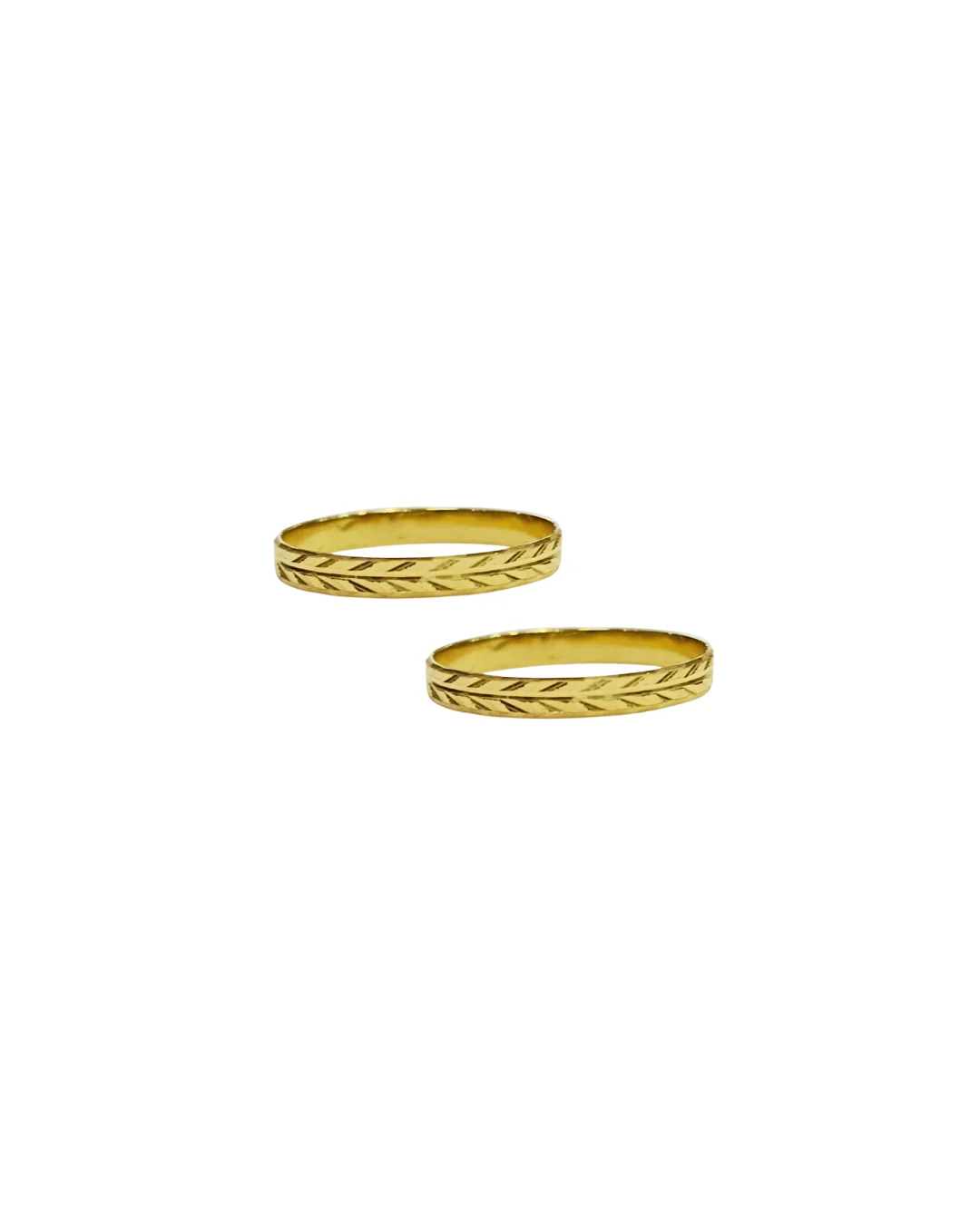 Estas dinámicas ilusiones, hechas completamente a mano en oro 18K, presentan el diseño tallado espigas en 2mm de ancho que simboliza amor con delicadeza, compromiso dinámico y unión para toda la vida. El tallado espiga crea un efecto visual de movimiento constante en alianzas de boda.