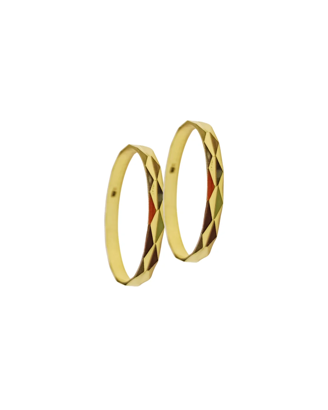 Estas geométricas ilusiones, hechas completamente a mano en oro 18K, presentan el diseño tallado rombo en 2mm de ancho que simboliza amor estructurado, compromiso con forma definida y unión para toda la vida. El tallado rombo crea un patrón geométrico delicado y moderno en alianzas de boda.