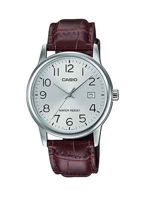 Reloj Casio MTP-V002L-7B2 – Cuero Café Texturado Esfera Blanca Clásico